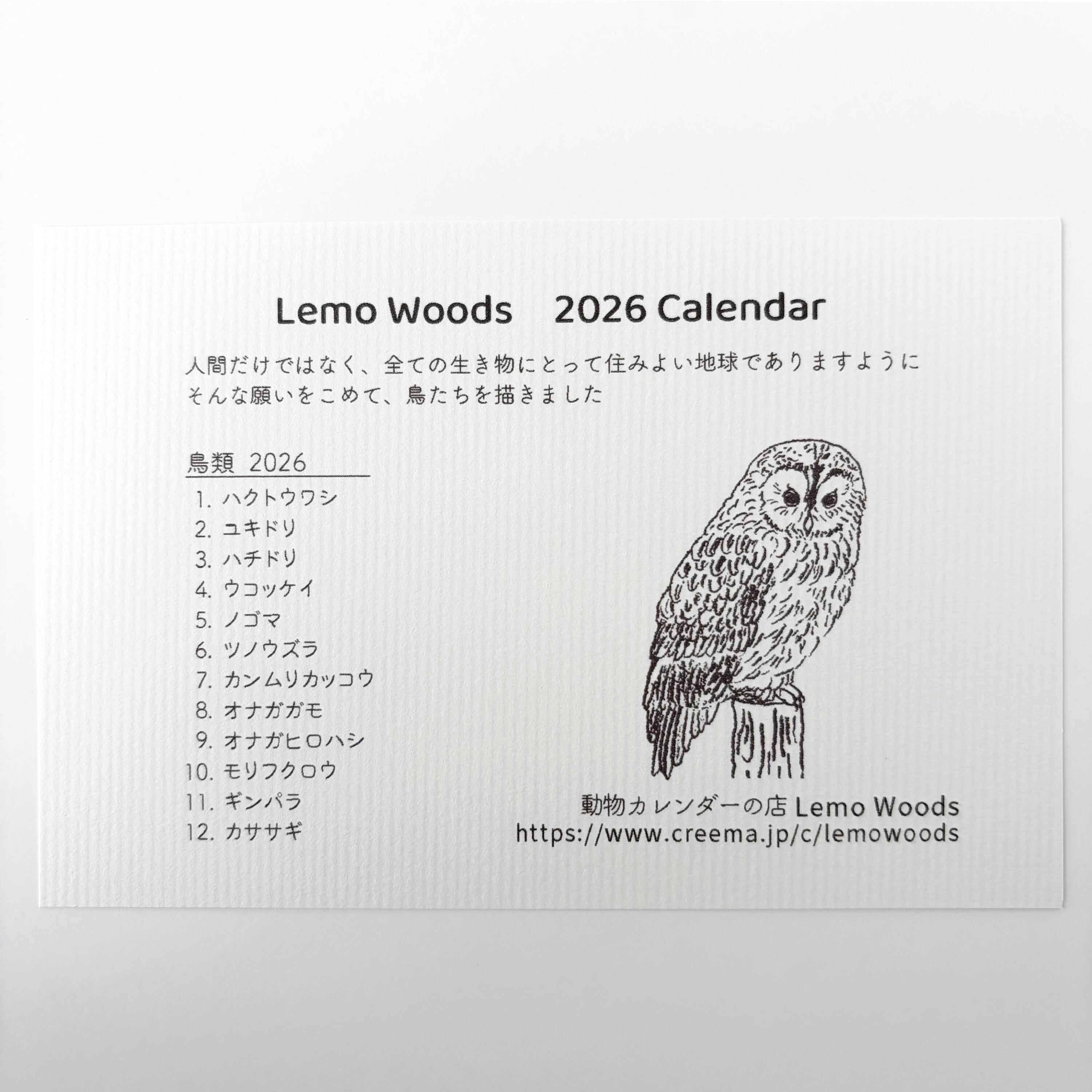 2026年版 Lemo Woodsカレンダー